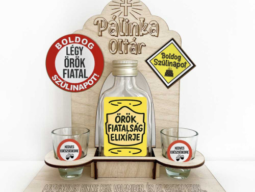 Vicces Pálinka Oltár - Örök Fiatalság Elixírje - Születésnapi Pálinka Kínáló Készlet
